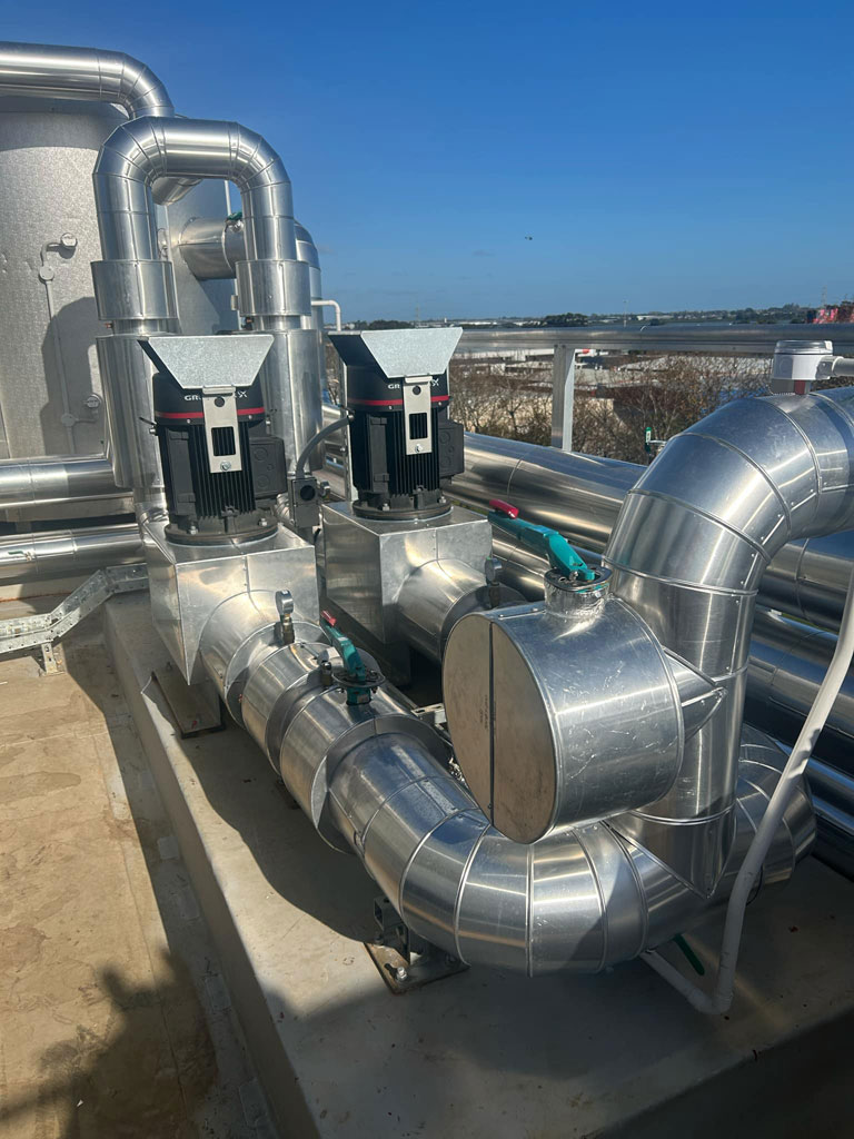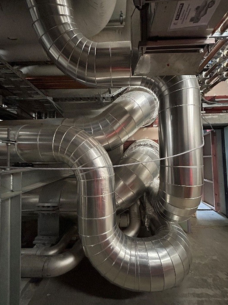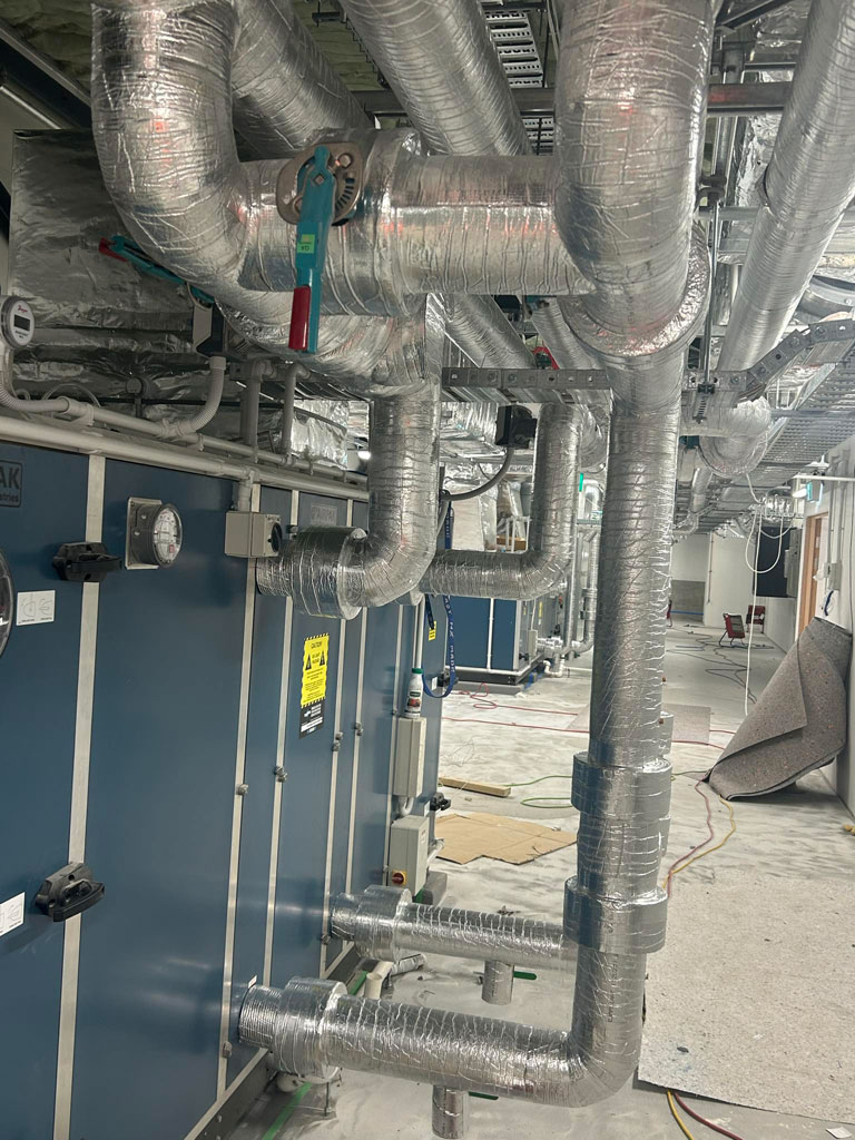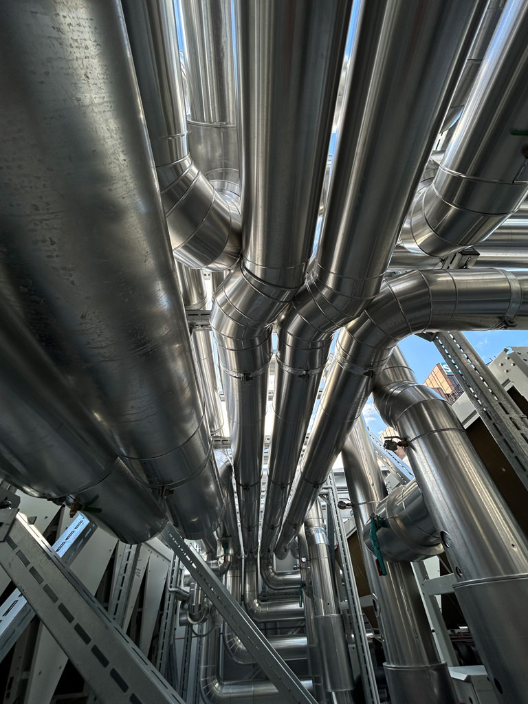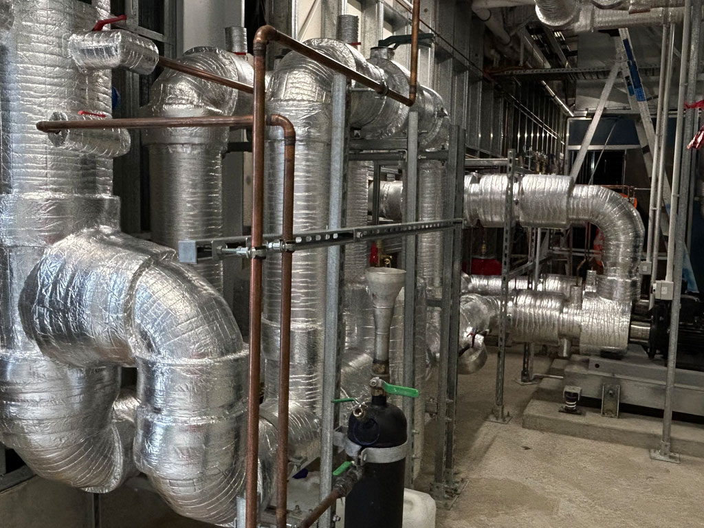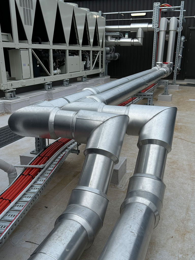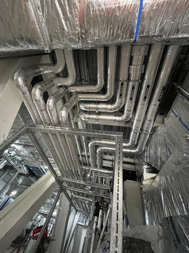The installation required precision and technical expertise to ensure thermal efficiency and system integrity across the six floors of the new plant. By properly insulating and cladding these lines, we ensure that the hospital’s climate control and cooling systems operate at peak efficiency, reducing energy waste and preventing condensation issues that could compromise the facility's longevity.