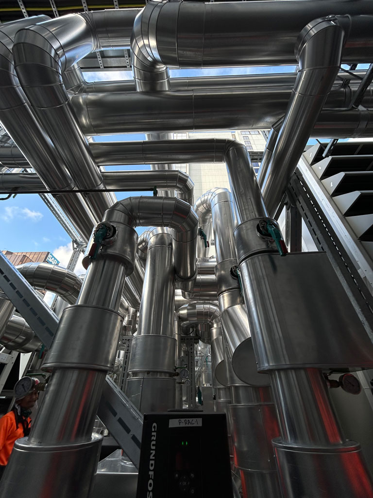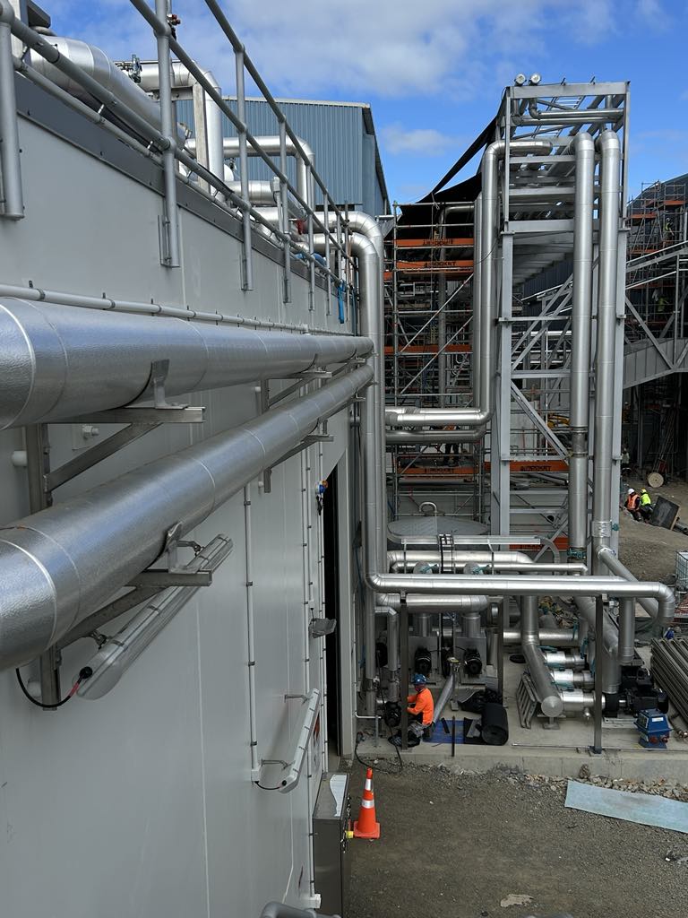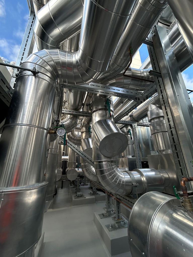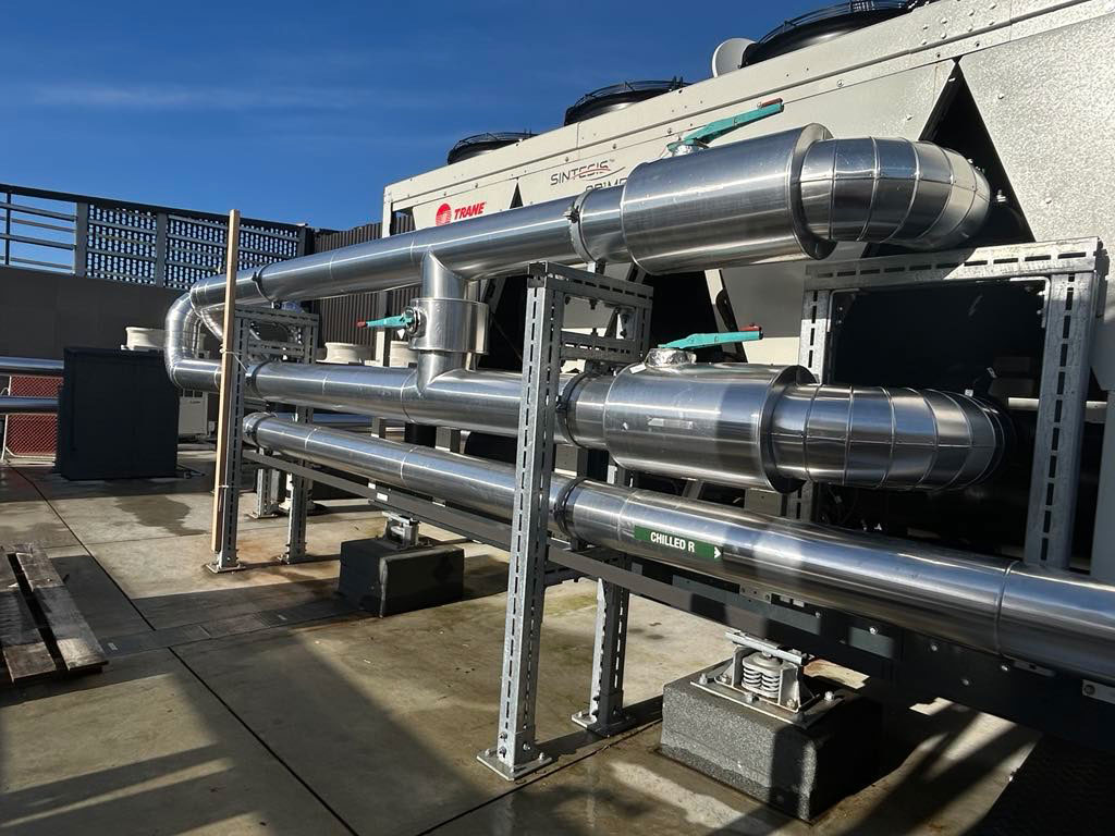 Pacific Insulation played a pivotal role in bringing this system to life. Our team successfully executed the complex insulation and cladding of the Chilled Water (CHW) pipework. This extensive network creates a vital artery connecting the existing A01 Building to the new, six-story A40 Central Plant Building.